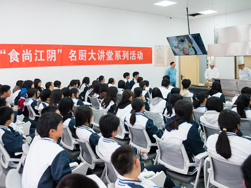 “食尚江阴”中国特色学徒制名厨大讲堂活动的开展,实现了将酒店厨房搬进课堂。同学们如置身餐饮企业中心厨房,对菜肴加工烹饪的流程一目了然,对餐饮企业当前热销的菜品、选用的食材、特色的调料、制作的技法、装饰的风格等信息有了动态的了解。