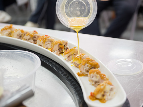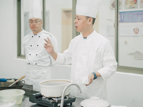 来自江阴餐饮一线的两位名厨,一招一式尽显扎实功底,秉持烹饪技艺传承与创新的使命和担当,将当前酒店热销菜品倾囊相授,从菜肴原料的选择、加工、切配、烹调、盛盘、装饰等各工艺环节进行了详细的讲解,并就原料加工、菜肴制作的重点、难点一一梳理,对菜品色、香、味、形、器的整体效果阐述了设计的心路历程。