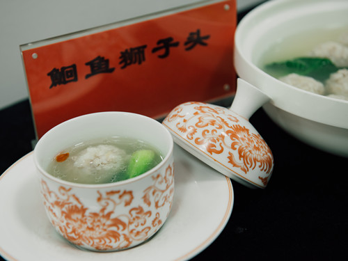 围绕菜品“鮰鱼狮子头”,大师们指出厨师刀工在烹饪中的关键作用,从刀工基本要求到花刀技巧,突显了刀工对菜品形态的影响。结合菜品“古法过桥鳝”阐述了火候对菜品口感的重要性,教导同学们厨师应根据不同食材和菜品要求控制火力、把准时间、掌握火候。两位学生代表有幸得到大师近距离指导狮子头甩打上劲手法和成形技巧,菜肴品尝环节更加提升了同学们的专业幸福感!